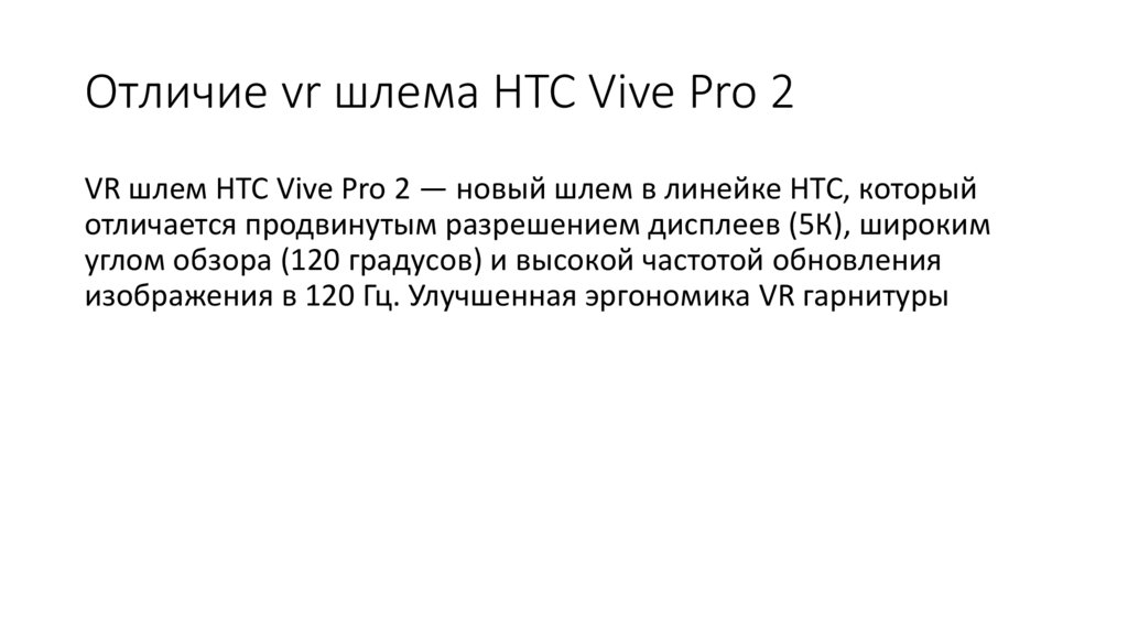 Отличие vr шлема HTC Vive Pro 2VR шлем HTC Vive Pro 2 — новый шлем в линейке HTC, который