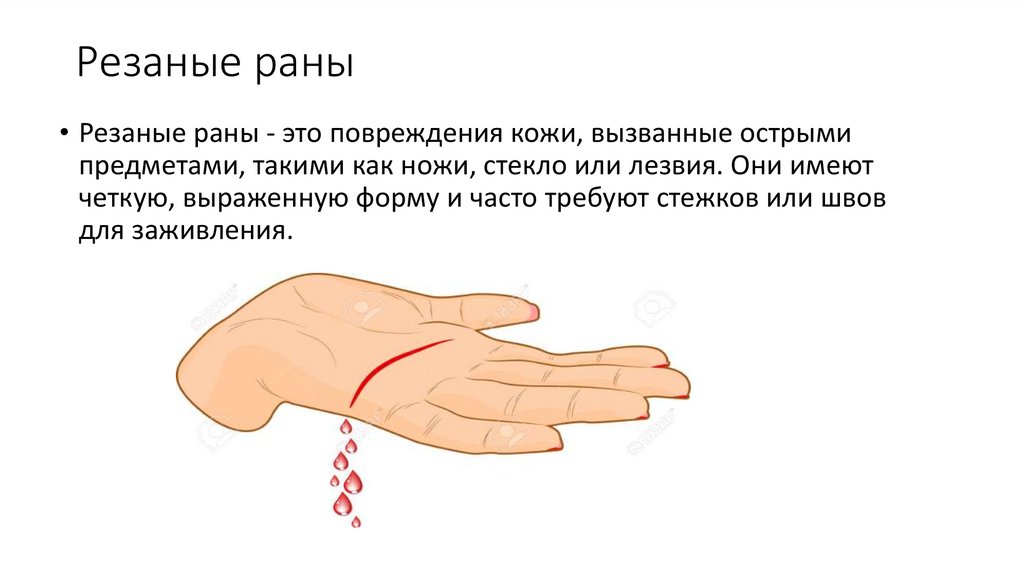Резаные раны• Резаные раны - это повреждения кожи, вызванные острыми