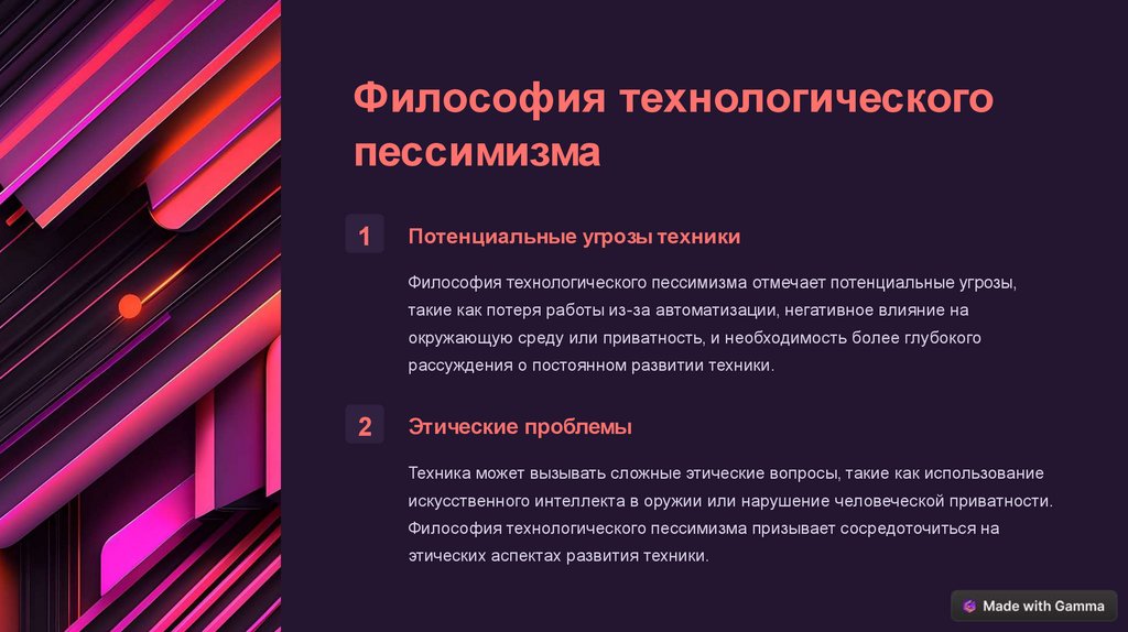 Философия технологического пессимизма отмечает потенциальные угрозы,
