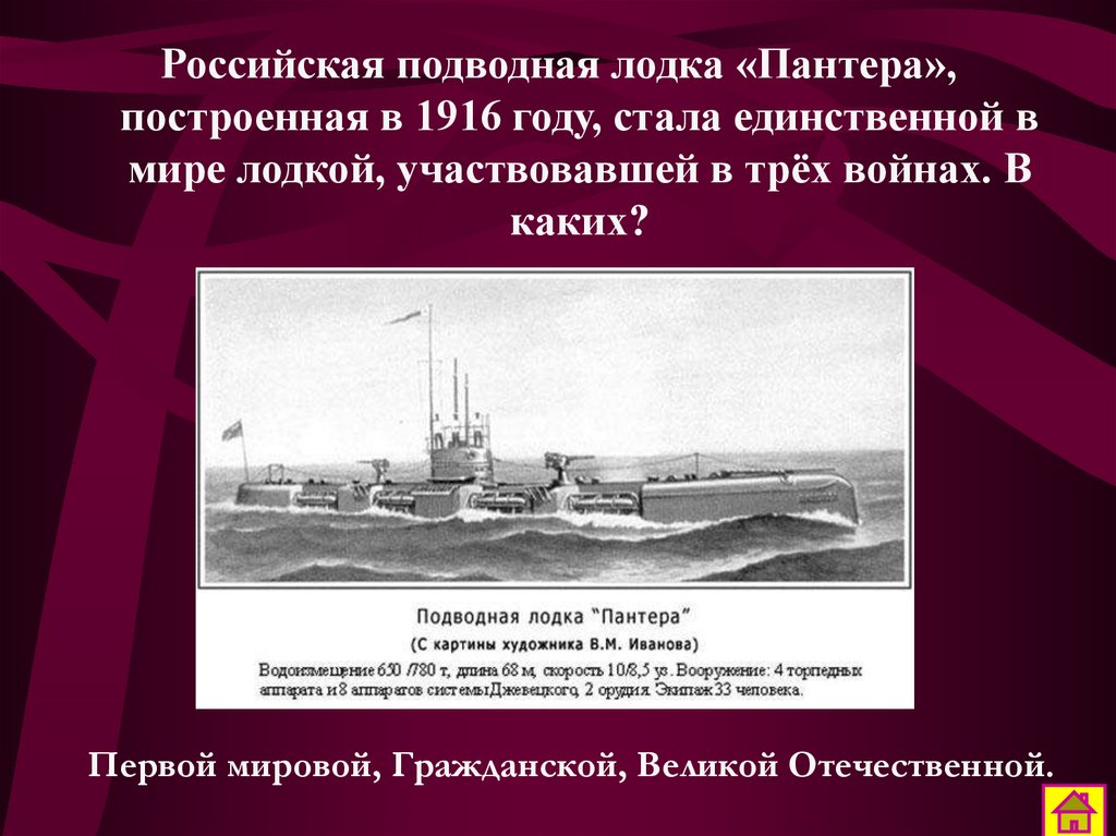 Российская подводная лодка «Пантера»,построенная в 1916 году, стала единственной в