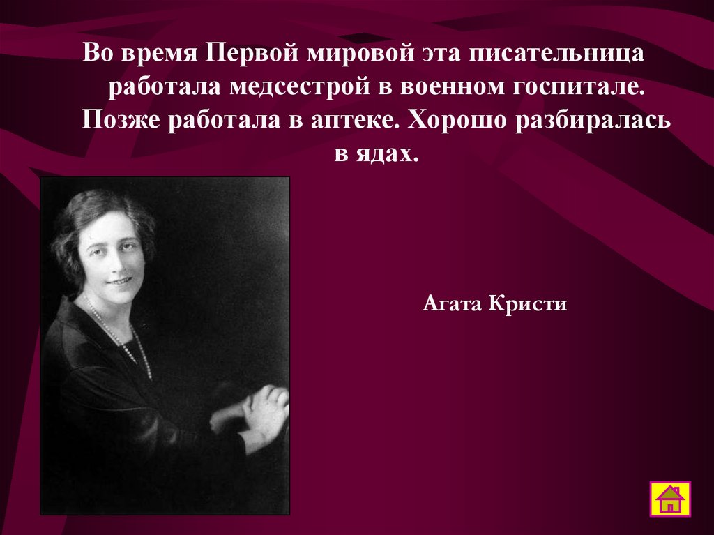 Во время Первой мировой эта писательницаработала медсестрой в военном госпитале.