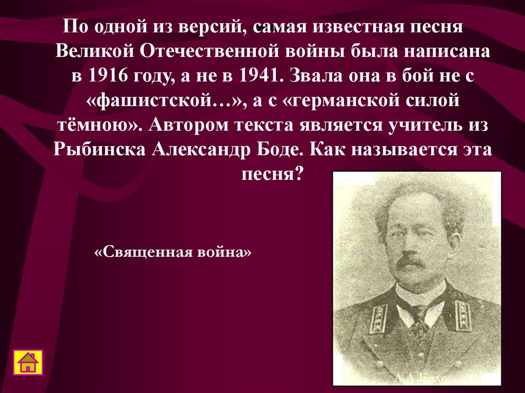 По одной из версий, самая известная песняВеликой Отечественной войны была написана