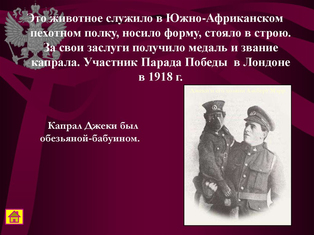 Это животное служило в Южно-Африканскомпехотном полку, носило форму, стояло в строю.