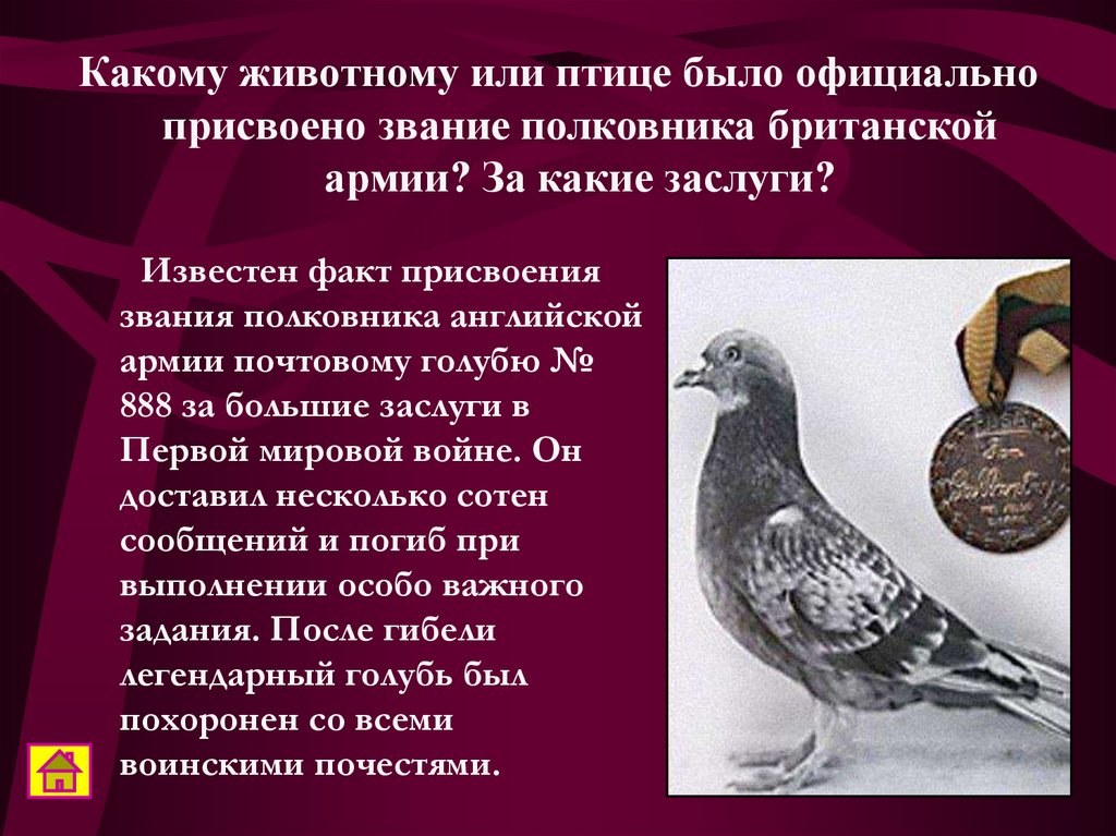 Какому животному или птице было официальноприсвоено звание полковника британской
