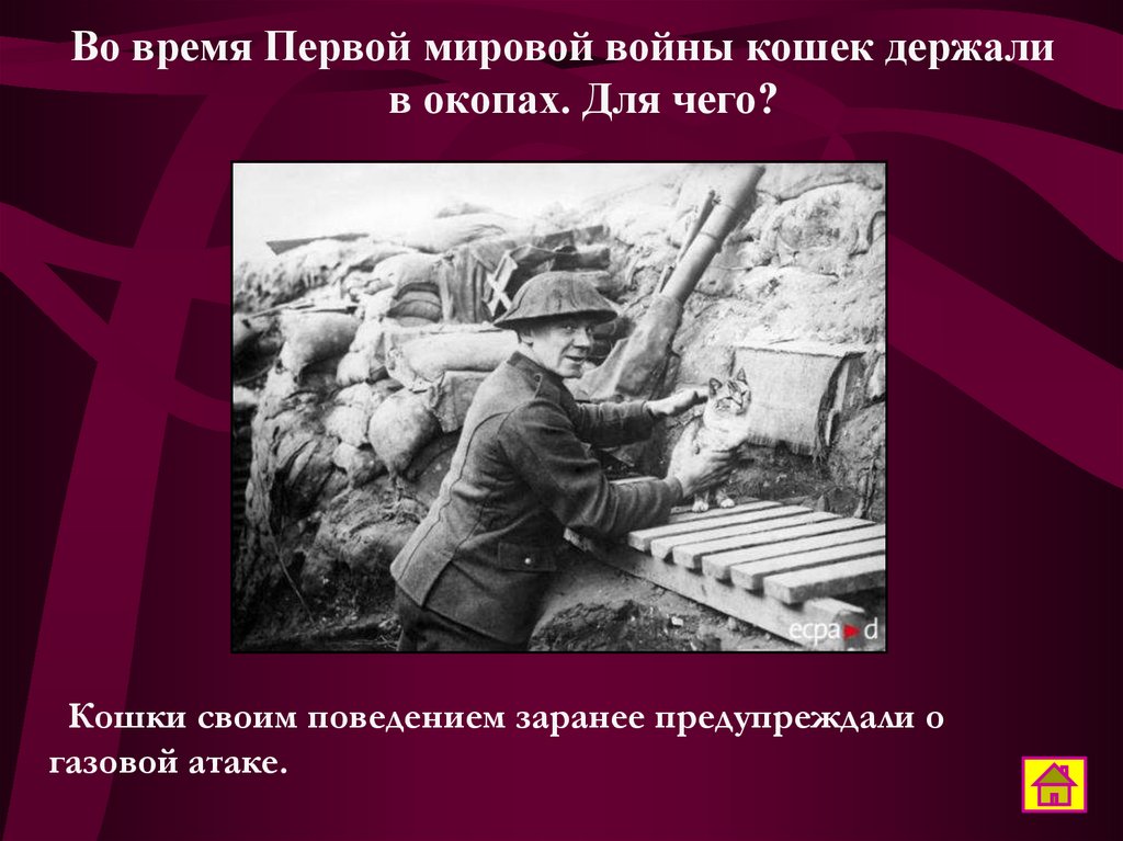 Во время Первой мировой войны кошек держалив окопах. Для чего?