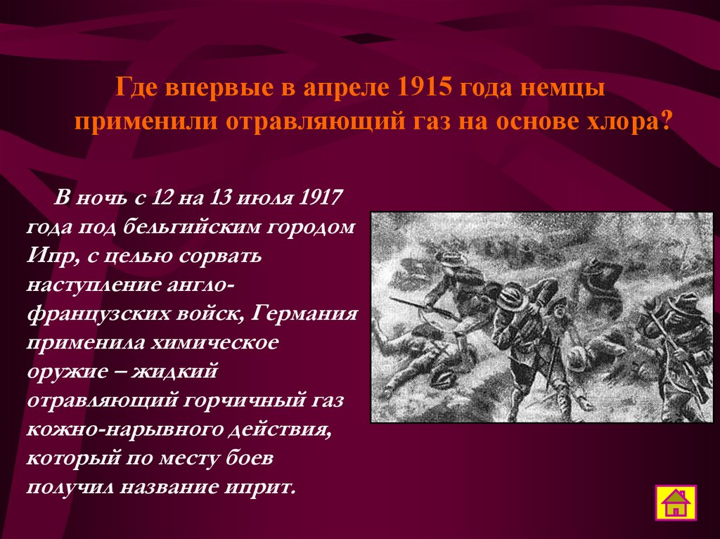 Где впервые в апреле 1915 года немцыприменили отравляющий газ на основе хлора?