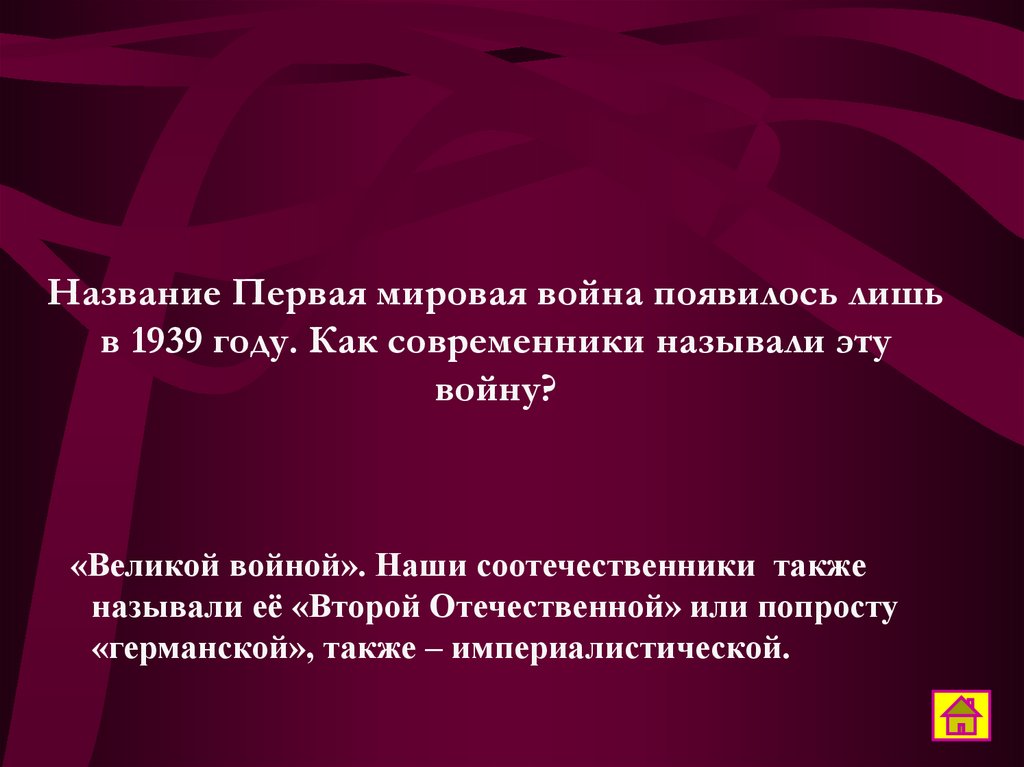 Название Первая мировая война появилось лишьв 1939 году. Как современники называли эту