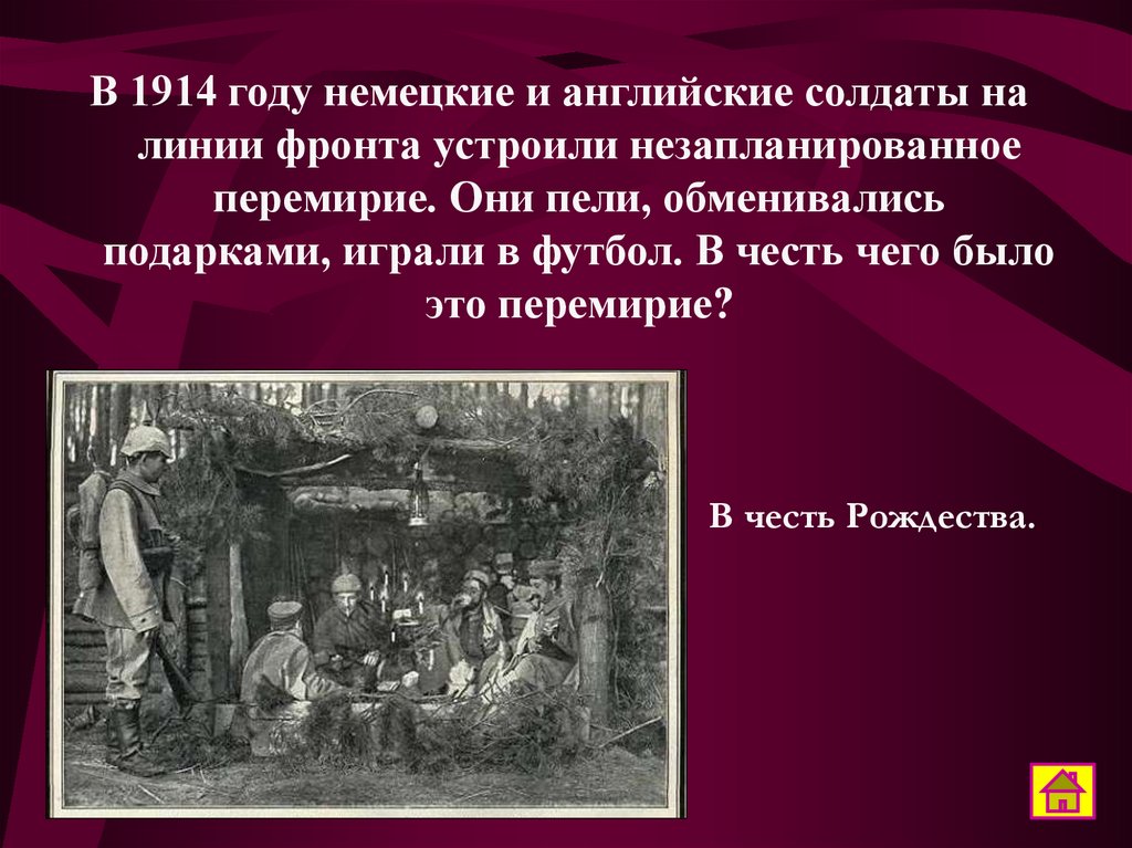 В 1914 году немецкие и английские солдаты налинии фронта устроили незапланированное