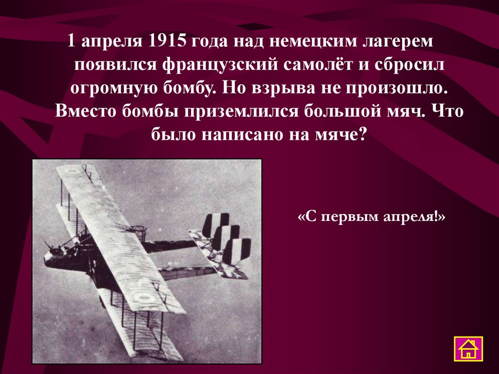 1 апреля 1915 года над немецким лагеремпоявился французский самолёт и сбросил