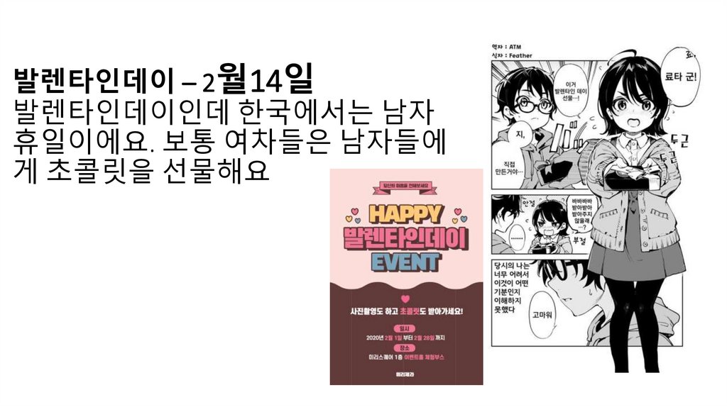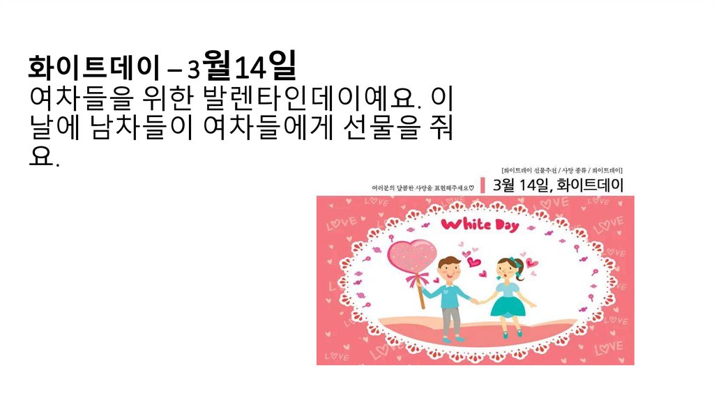 발렌타인데이 – 2월14일발렌타인데이인데 한국에서는 남자