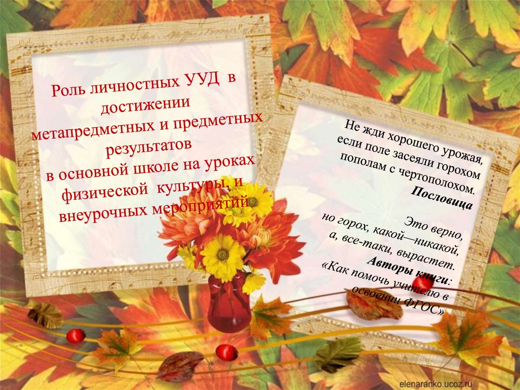 Роль личностных УУД в достижении метапредметных и предметных результатов в основной школе на уроках физической культуры
