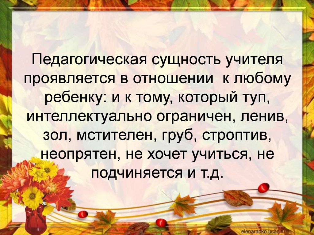 Педагогическая сущность учителяпроявляется в отношении к любому