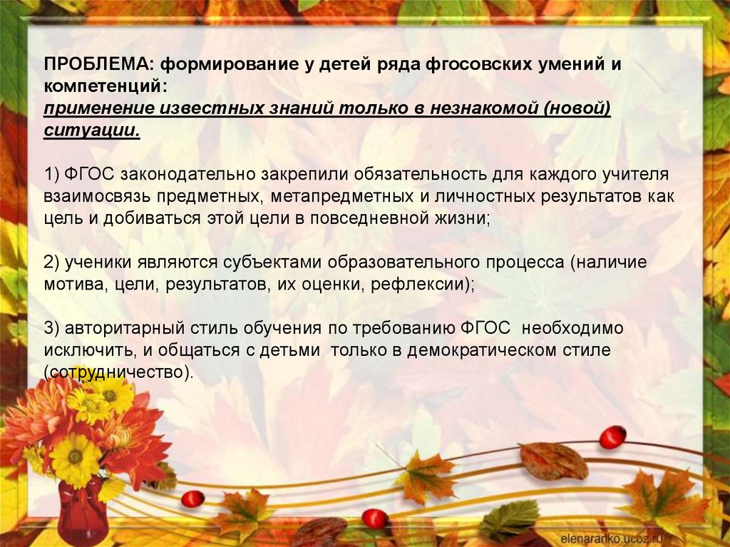 3) авторитарный стиль обучения по требованию ФГОС необходимо