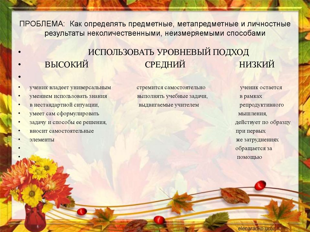 ПРОБЛЕМА: Как определять предметные, метапредметные и личностныерезультаты неколичественными, неизмеряемыми способами