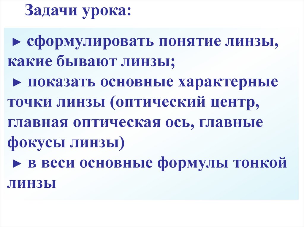Линза - прозрачное твердое тело, ограниченноедвумя сферическими поверхностями.