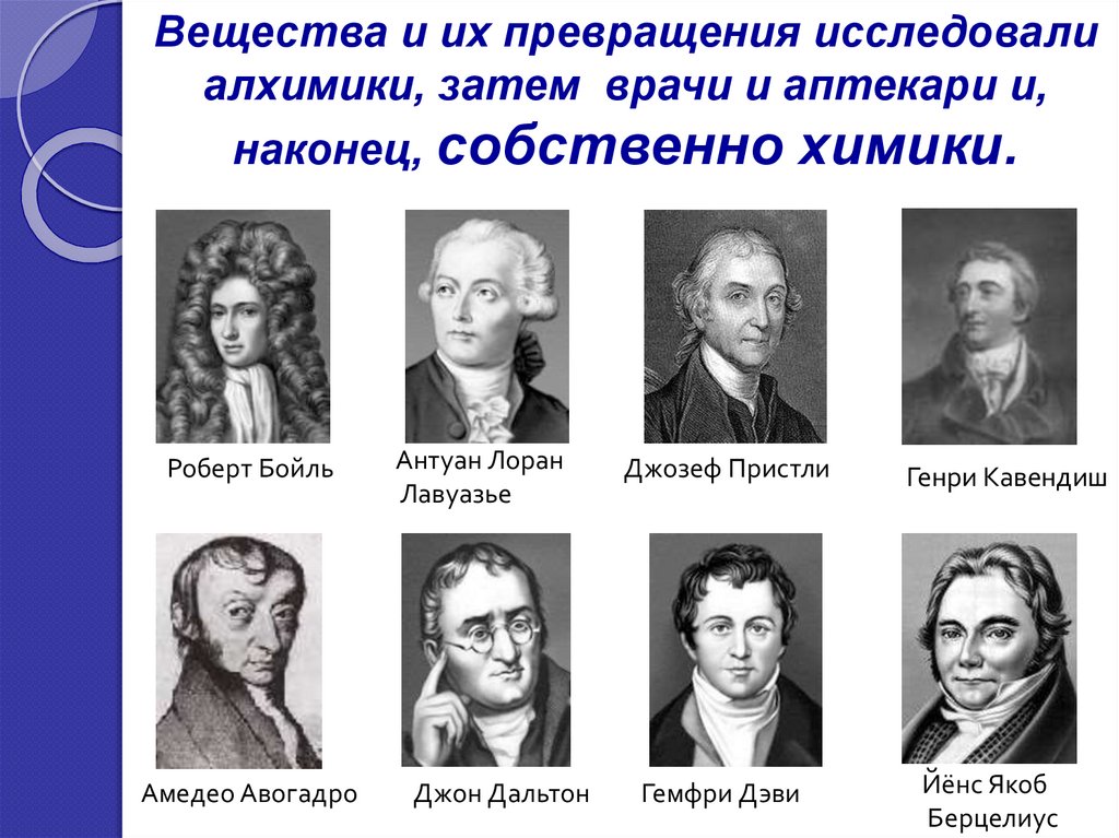 Вещества и их превращенияисследовали разные люди, в том числе -