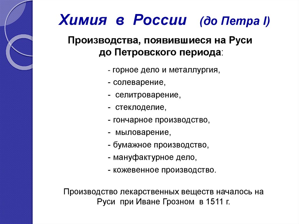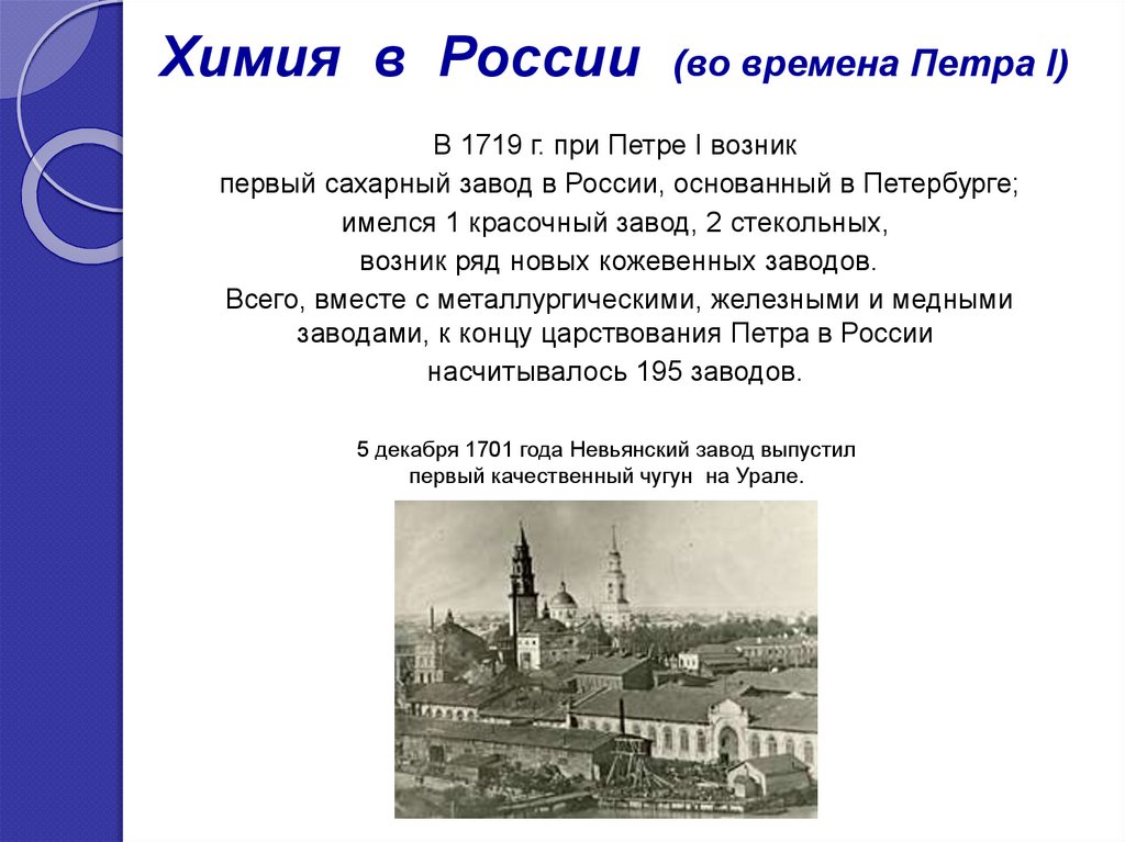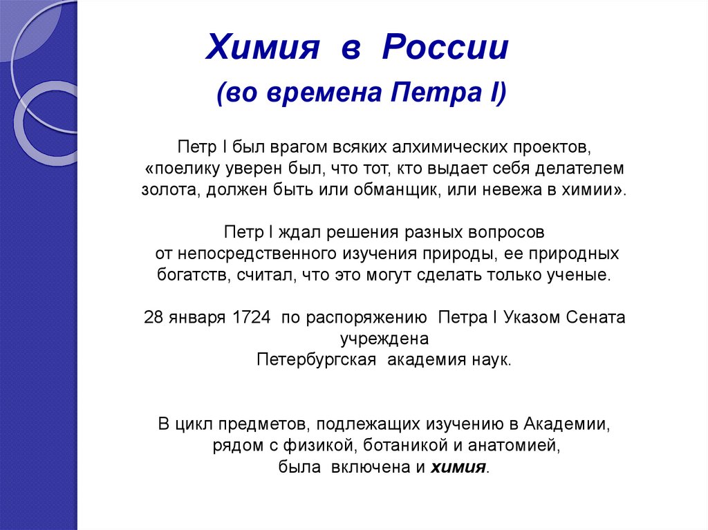 Химия в России(во времена Петра I)