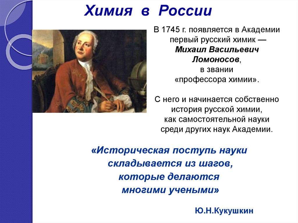 Химия в РоссииВ 1745 г. появляется в Академии