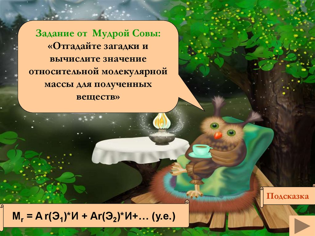 Интерактивный тренажер «Загадки Мудрой Совы» по теме «Относительная молекулярная масса». Химия. 8 класс