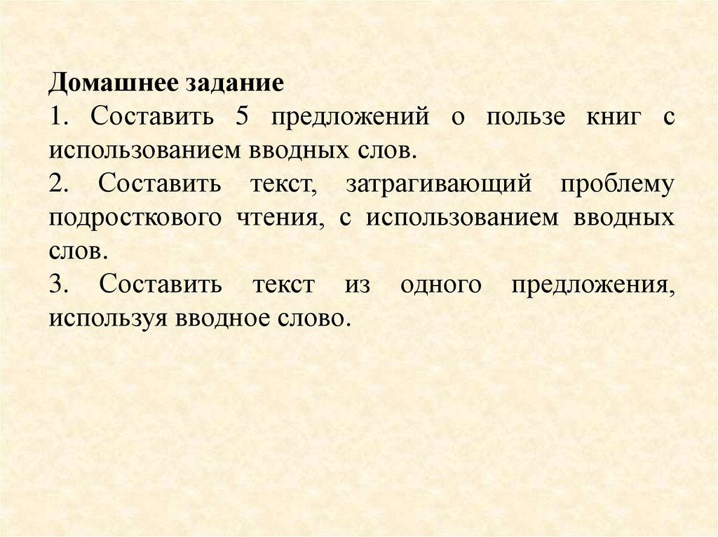 Домашнее задание1. Составить 5 предложений о пользе книг с