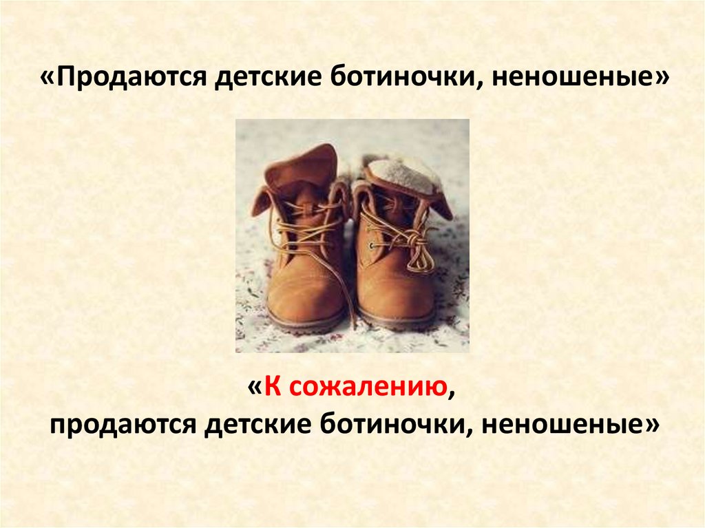 «Продаются детские ботиночки, неношеные»«К сожалению,