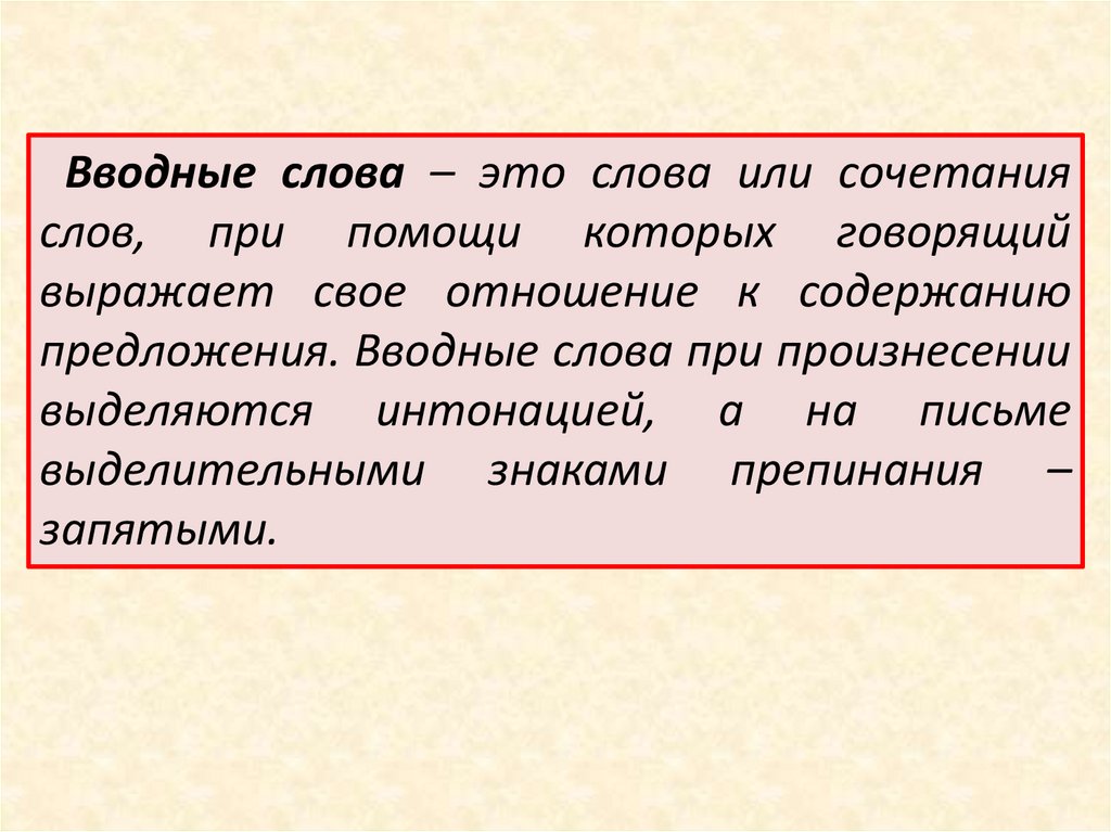 Вводные слова – это слова или сочетанияслов, при помощи которых говорящий