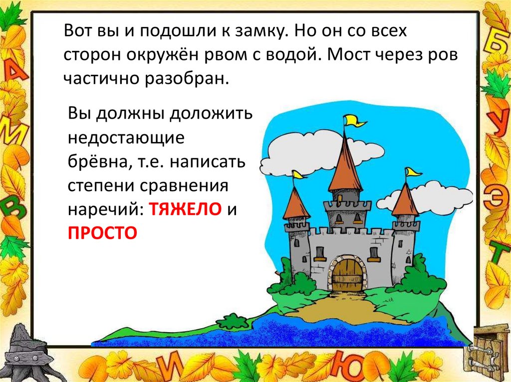 Вот вы и подошли к замку. Но он со всехсторон окружён рвом с водой. Мост через ров