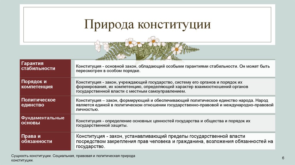 Сущность конституции. Социальная, правовая и политическая природа конституции
