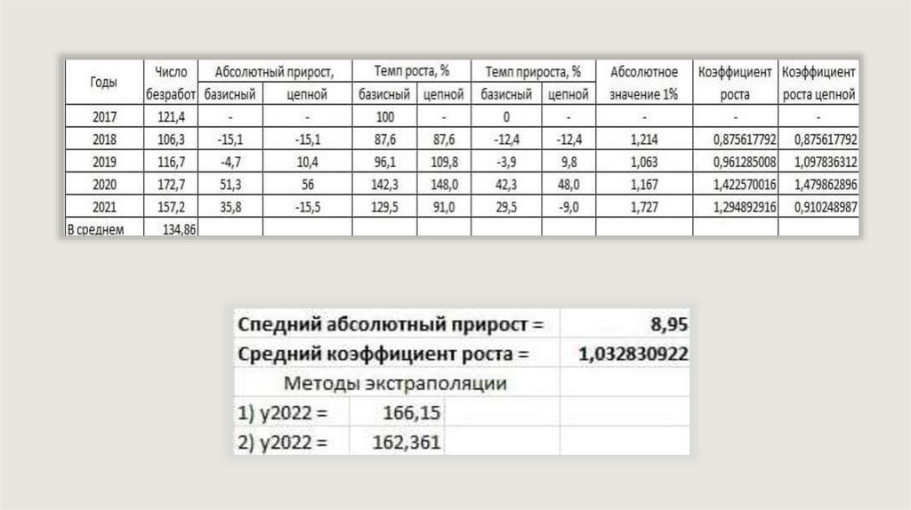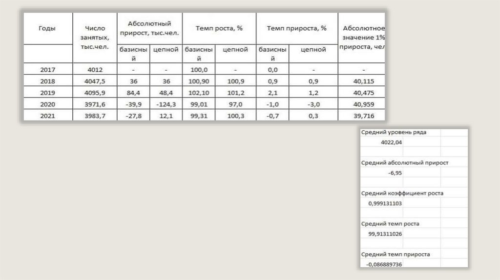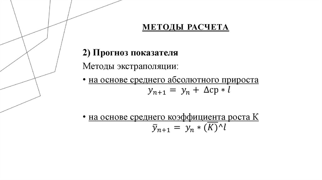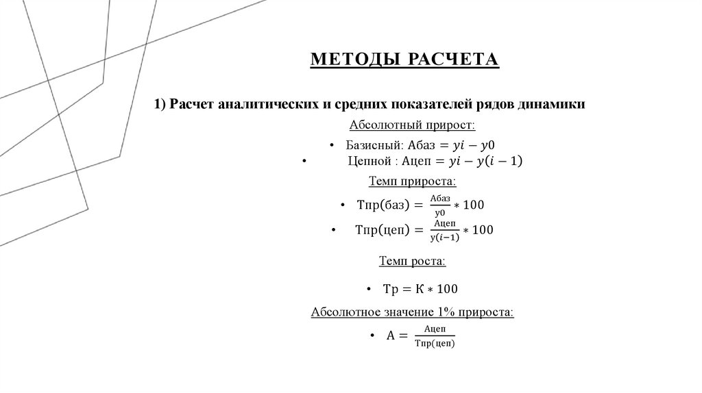 МЕТОДЫ РАСЧЕТА1) Расчет аналитических и средних показателей рядов динамики