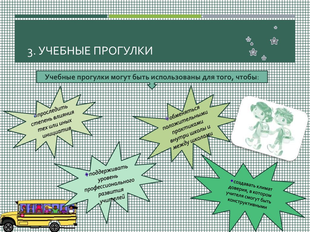 3. УЧЕБНЫЕ ПРОГУЛКИкороткий, структурированный визит на урок (на любое