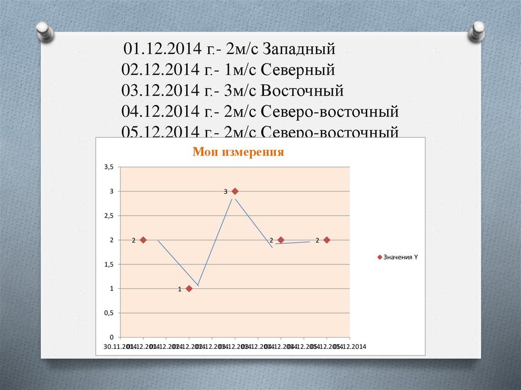 01.12.2014 г.- 4м/с Западный02.12.2014 г.- 1м/с Северный