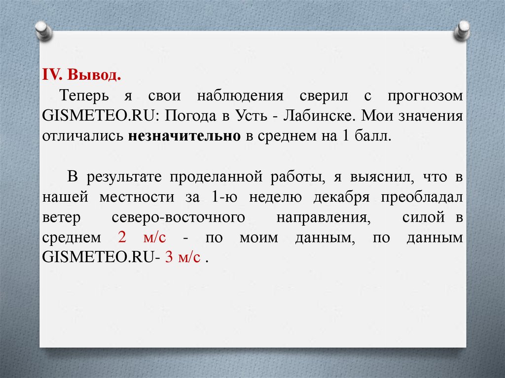 IV. Вывод.Теперь я свои наблюдения сверил с прогнозом