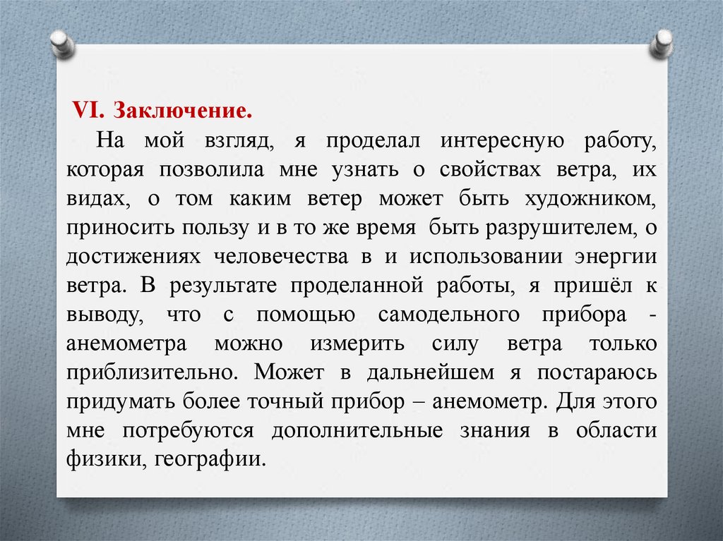 VI. Заключение.На мой взгляд, я проделал интересную работу,