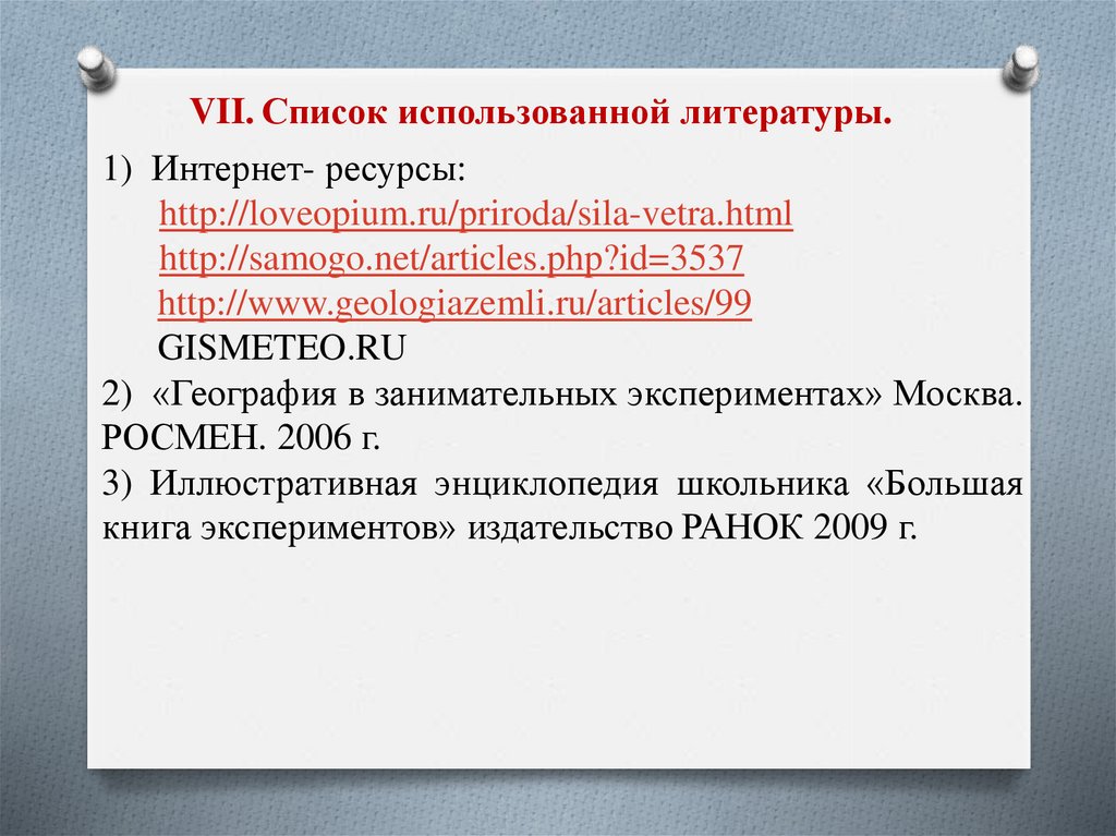 VII. Список использованной литературы.1) Интернет- ресурсы: