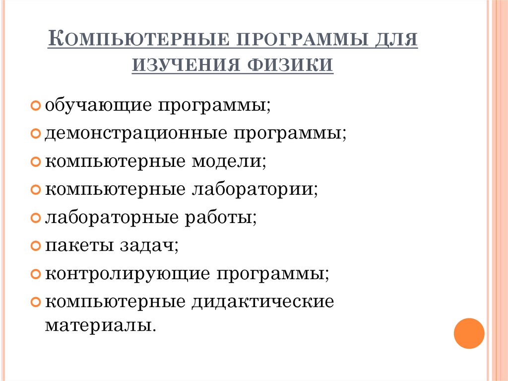 КОМПЬЮТЕРНЫЕ ПРОГРАММЫ ДЛЯИЗУЧЕНИЯ ФИЗИКИ