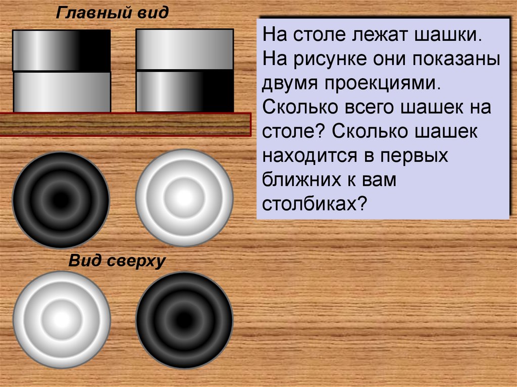 Главный видНа столе лежат шашки.