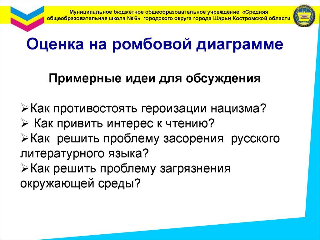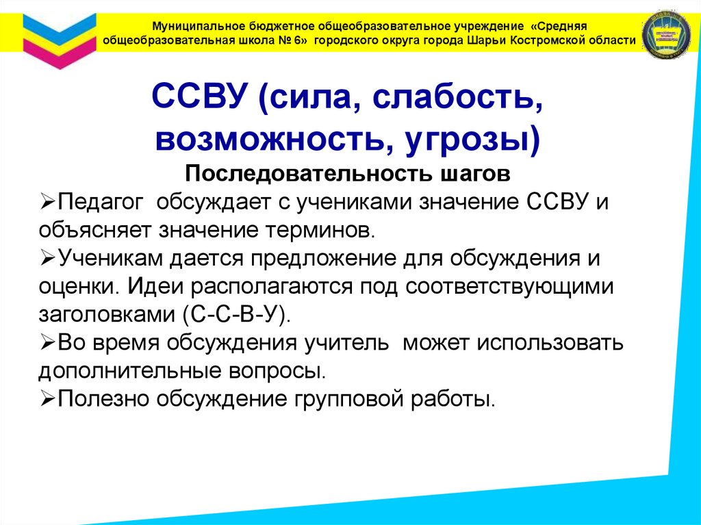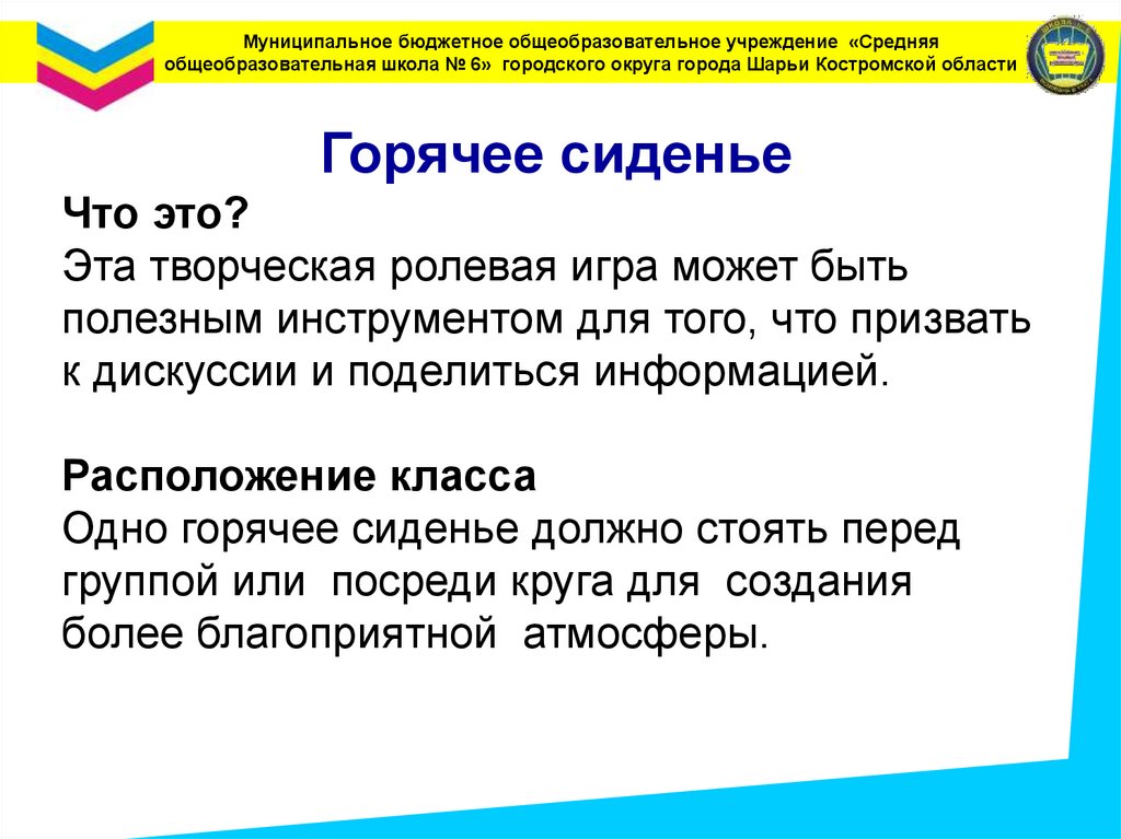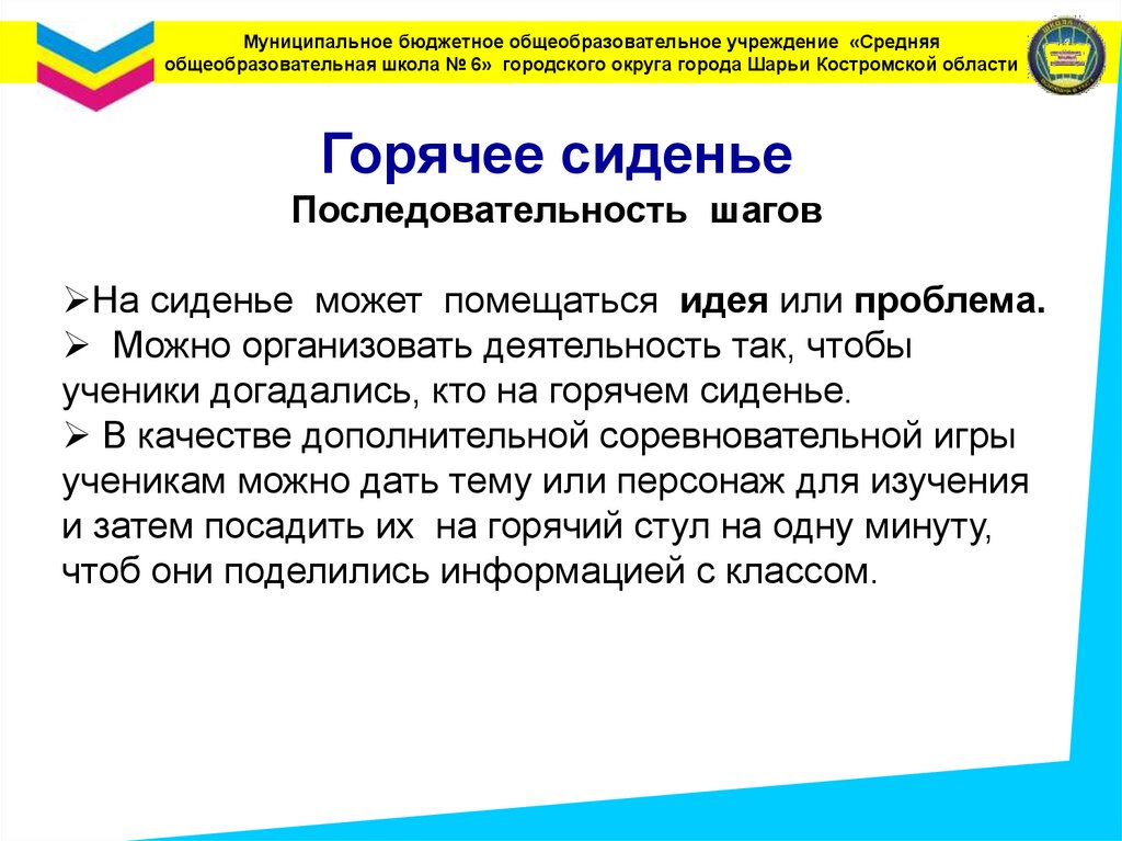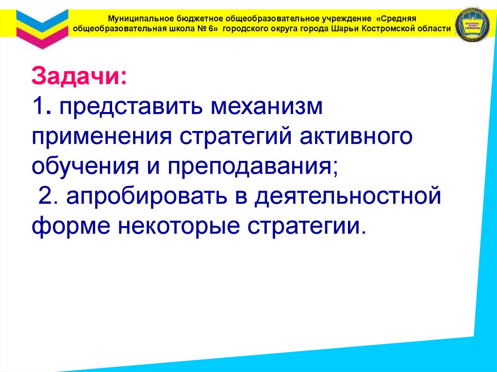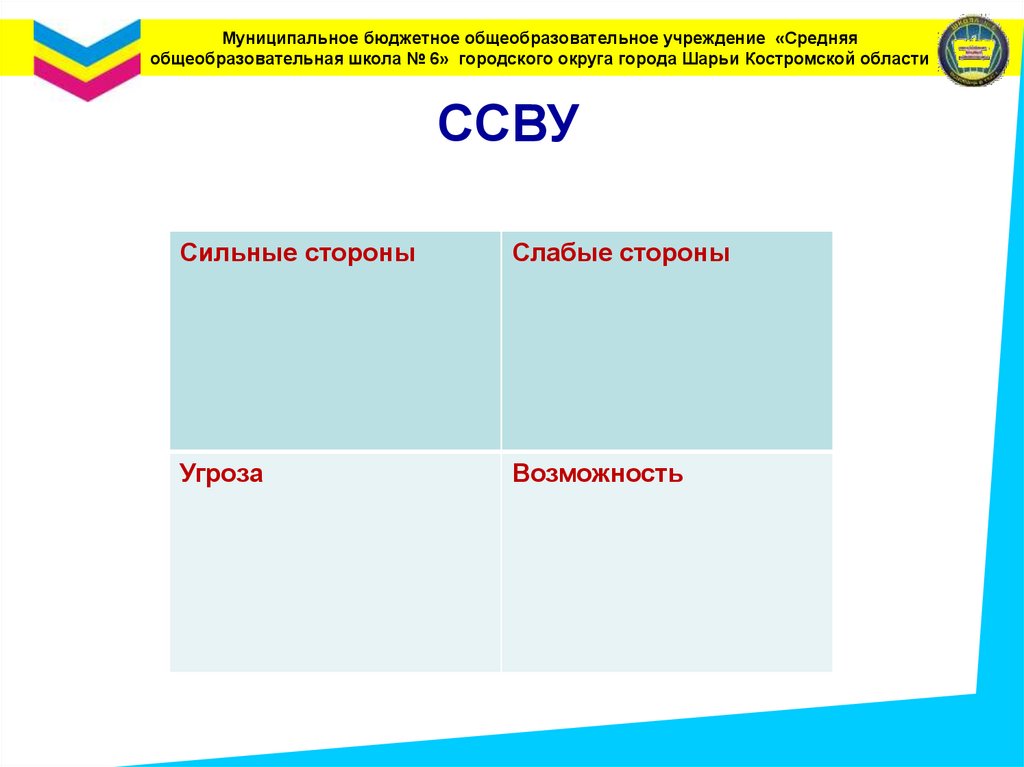 Муниципальное бюджетное общеобразовательное учреждение «Средняяобщеобразовательная школа № 6» городского округа города Шарьи Костромской области