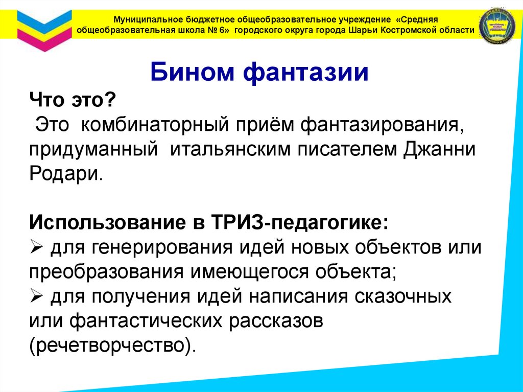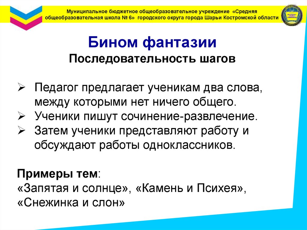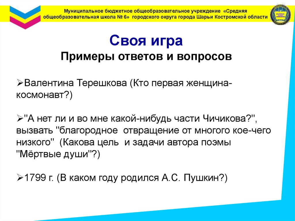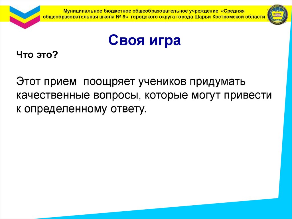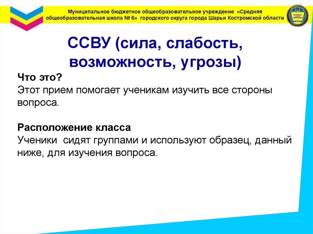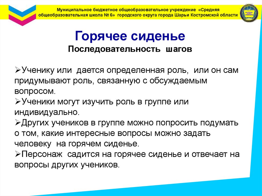 Муниципальное бюджетное общеобразовательное учреждение «Средняяобщеобразовательная школа № 6» городского округа города Шарьи Костромской области