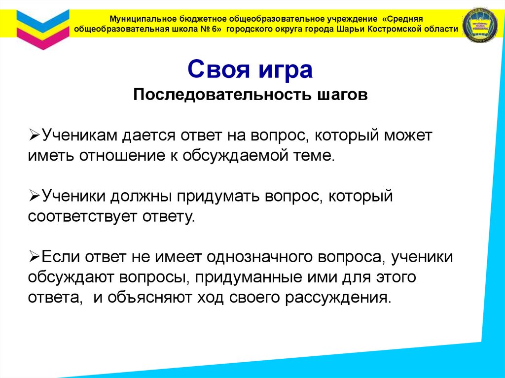 Ученики должны придумать вопрос, который