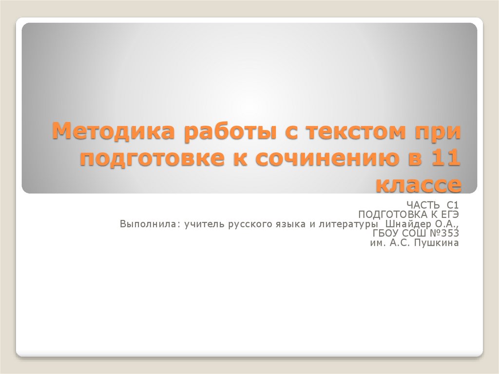 Методика работы с текстом при подготовке к сочинению в 11 классе