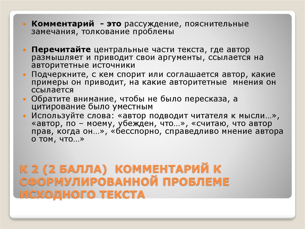 К 2 (2 БАЛЛА) КОММЕНТАРИЙ К