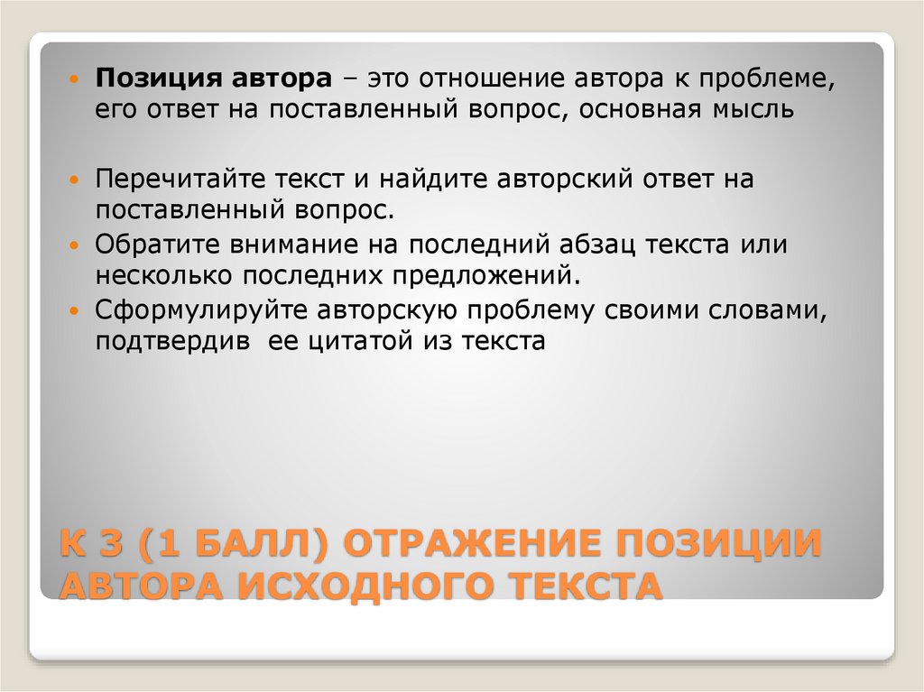 К 3 (1 БАЛЛ) ОТРАЖЕНИЕ ПОЗИЦИИ