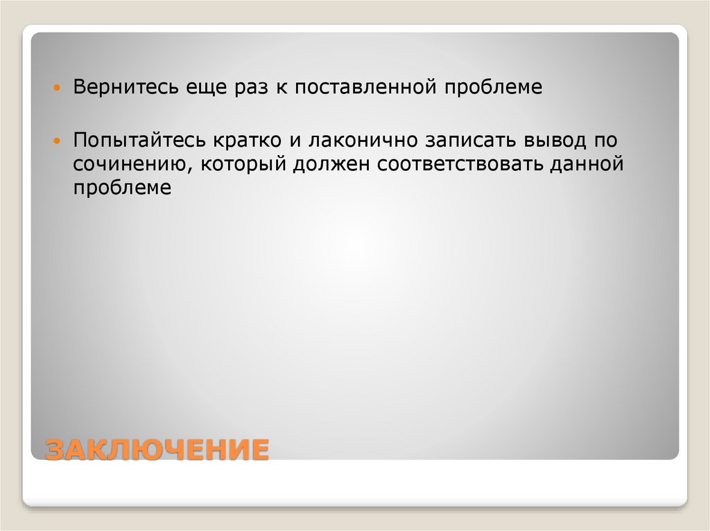 Вернитесь еще раз к поставленной проблемеПопытайтесь кратко и лаконично записать вывод по