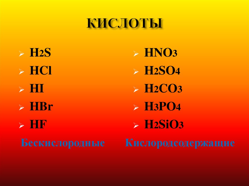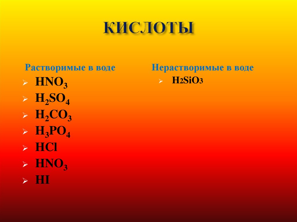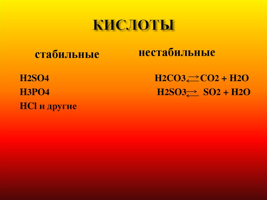 ОРГАНИЧЕСКИЕ КИСЛОТЫНЕОРГАНИЧЕСКИЕ КИСЛОТЫ