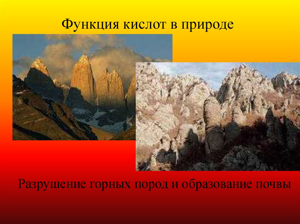 Функция кислот в природеРазрушение горных пород и образование почвы