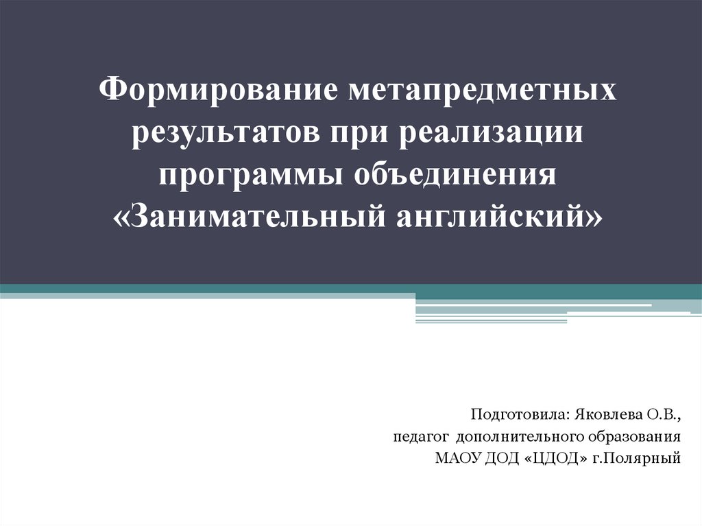 Формирование метапредметных результатов при реализации программы объединения «Занимательный английский»