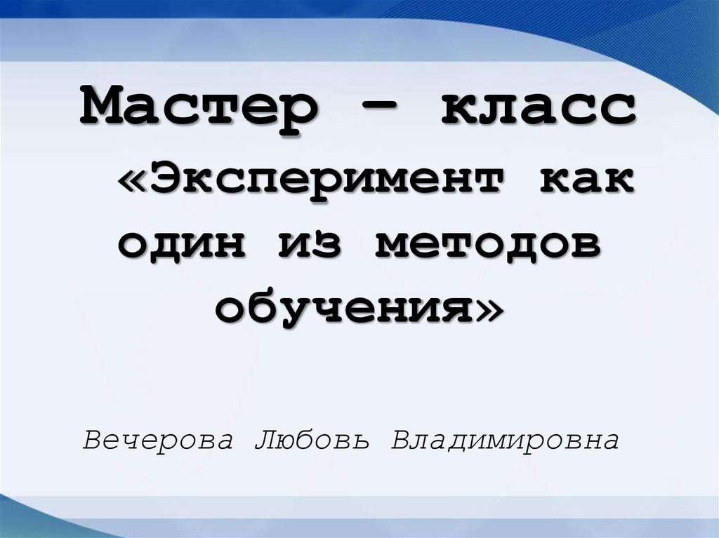 1. Мастер – класс «Эксперимент как один из методов обучения»