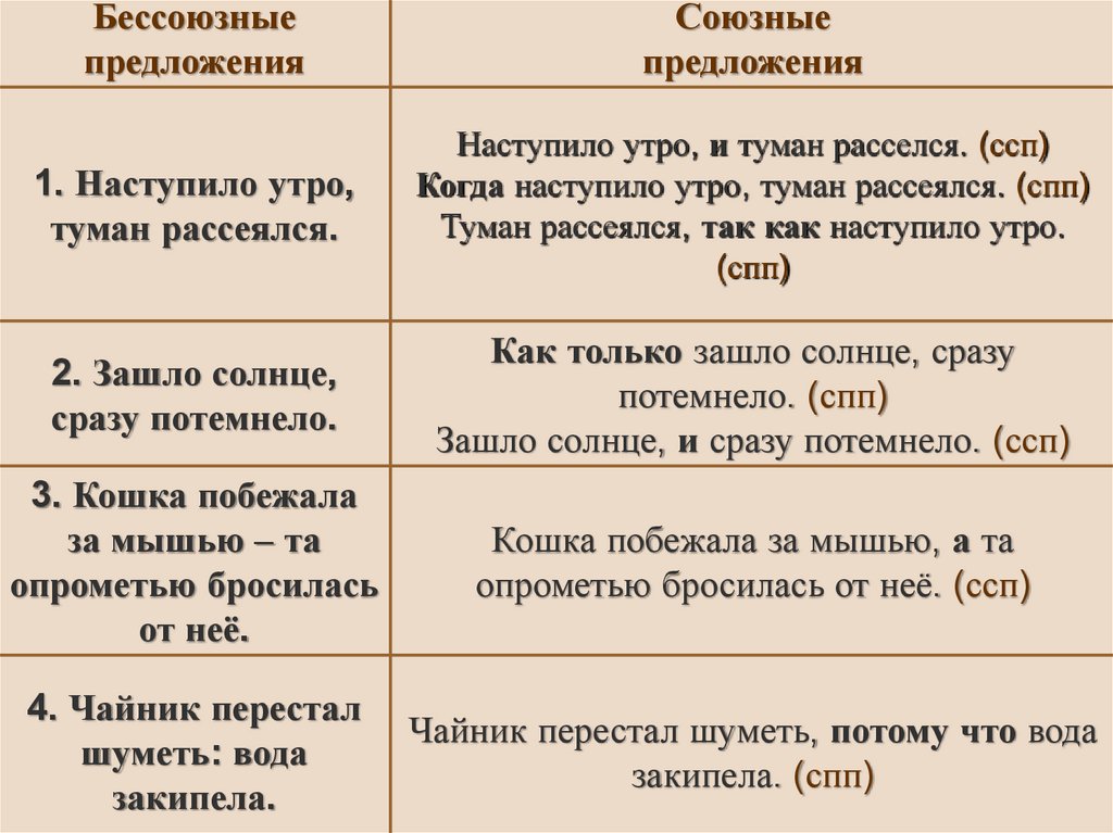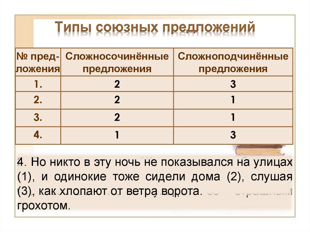 Типы союзных предложений№ пред- Сложносочинённые Сложноподчинённые