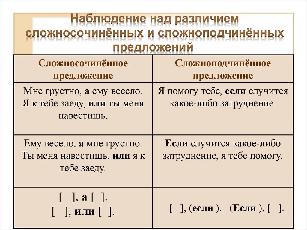 Наблюдение над различиемсложносочинённых и сложноподчинённых