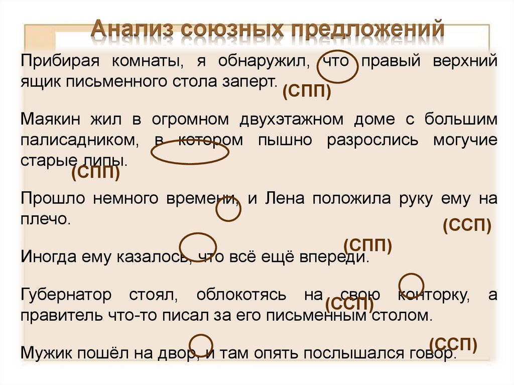 Анализ союзных предложенийПрибирая комнаты, я обнаружил, что правый верхний